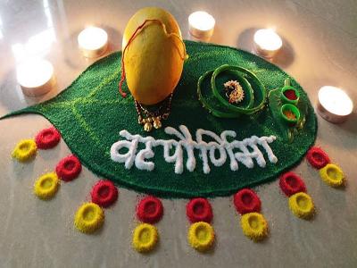 अखंड सौभाग्यासाठी महिला ही वटपौर्णिमेची पूजा करतात, अशावेळी आपण वेगवेगळ्या प्रकारच्या सौभाग्याचा संदेश देखील रांगोळीत लिहू शकतो.