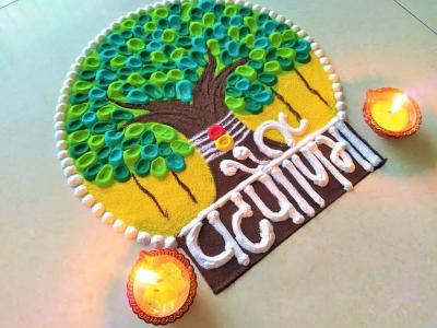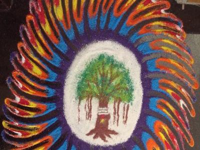 एखाद्या गडद रंगात वडाचं झाड काढलं तर तेही रांगोळी म्हणून अतिशय सुंदर दिसू शकतं.