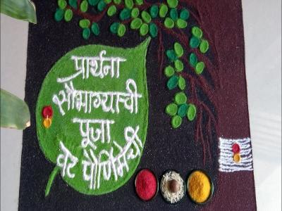 अखंड सौभाग्यासाठी महिला वर्गात ही पूजा मनोभावे केली जाते. अशावेळी सौंभाग्यलंकार असलेली आगळीवेगळी रांगोळी दाराची शोभा वाढवणारी ठरते.