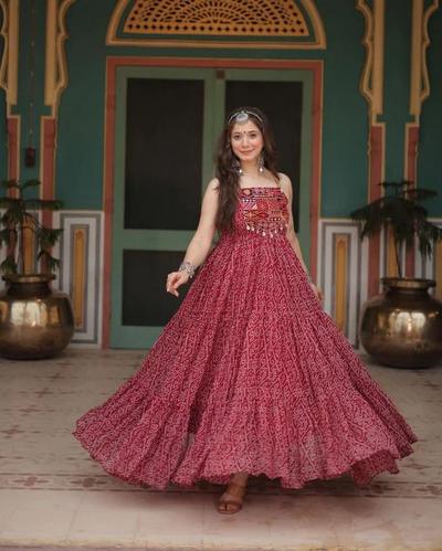 अनारकली ड्रेसला छान घेर असतो. त्यामुळे तो गरब्यासाठी किंवा नवरात्रीच्या दिवसात वापरण्यासाठी एकदम मस्त आहे.