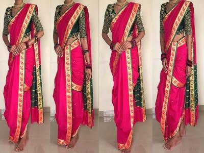 पण एक नवा ट्रेंड आहे ज्यामध्ये साध्या सहावारी साडीचा वापर करून नऊवारी साडी नेसता येते. मग घरात असलेल्या कोणत्याही साडीचा वापर करणं सहज शक्य आहे.