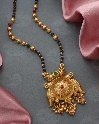 या मंगळसुत्रांचे सर्वात मोठे आकर्षण म्हणजे त्याचे मोठे आणि कलाकुलर असलेले हेवी पेंडंट. ज्यावर नाजूक नक्षीकाम किंवा मिनाकारी असते.
