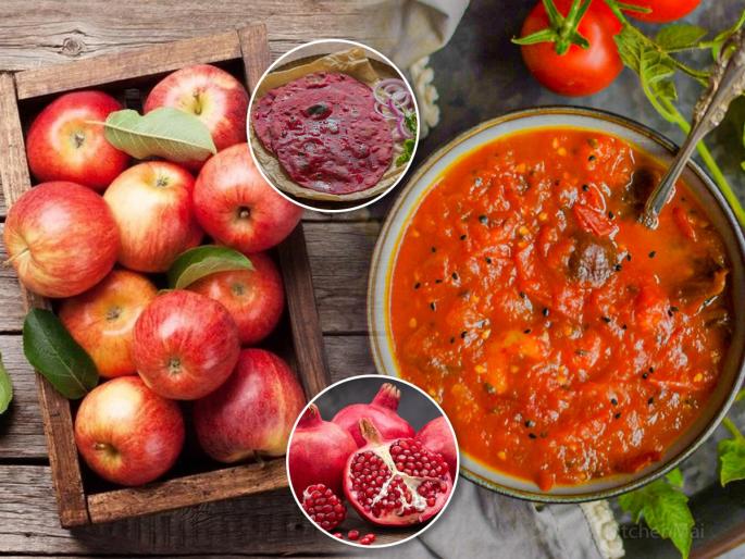 1 / 8नवरात्रीत नवरंगांना विशेष महत्व असते. या नऊ दिवसात महिला अगदी प्रत्येक दिवशी प्रत्येक रंग फॉलो करतात. प्रत्येक दिवशी अगदी त्या - त्या रंगाचे कपडे परिधान करून अगदी नटून थटून त्या तयार होत असतात. परंतु या साजशृंगारासोबतच जर आपण आपल्या आरोग्याकडे विशेष लक्ष दिले तर ती अधिक फायदेशीर ठरेल. या नऊ दिवसांच्या रंगांप्रमाणे जर आपण प्रत्येक एका दिवशी त्या रंगाचे पदार्थ खाण्याला प्राधान्य दिले तर आपल्या आरोग्याच्या दृष्टीने ते अधिक उपयुक्त ठरेल. आज लाल रंगाच्या निमित्ताने आपण कोणते लाल पदार्थ खाऊ शकतो ते पाहूयात(Importance & Benefits Of Red Color Food).2 / 8आपण कलिंगड, सफरचंद, चेरी, डाळिंब, प्लम यांसारखी लाल रंगांची वेगवेगळ्या प्रकारची फळ खाऊ शकता. या रंगाची फळे खाल्ल्याने शरीरातील रक्त वेगाने वाढते. लाल रंगाची फळे अॅनिमियाच्या रुग्णांसाठी सुपरफूडपेक्षा कमी नाहीत. याशिवाय त्यामध्ये लाइकोपिन असते ; जे कॅन्सर, हृदयाशी संबंधित आजार व डोळ्यांच्या समस्या दूर करण्यात मदत करते.3 / 8बीट किसून किंवा त्याचा रस काढून गव्हाच्या पिठात मिसळून आपण त्याचे पौष्टिक पराठे देखील बनवू शकतो. शक्यतो लहान मुलं किंवा घरातील इतर मंडळी बीट खाण्यासाठी नाकं मुरडतात अशावेळी आपण बीटाचा पौष्टिक पराठा बनवू शकतो. बिटाच्या पराठ्यांप्रमाणेच बीटाची भाजी, कोशिंबीर, बीटाचा रस आणि बीटाचा उपयोग करुन सँडवीज असे वेगवेगळे प्रकार करता येऊ शकतात. 4 / 8लालचुटुक टोमॅटोची चटकदार चटणी बनवण्यासाठी लालेलाल, ताजे, शिजवून मॅश केलेले टोमॅटो लागतात. इडली, डोसा आणि गरमा गरम भातासोबत साइड डिश म्हणून अनेक भारतीय घरांत या स्वादिष्ट टोमॅटोच्या चटणीचा आस्वाद घेतला जातो. तोंडाला पाणी आणणारी, आंबट-तिखट अशी ही लालेलाल टोमॅटो चटणी आपण थंड व कोरड्या ठिकाणी स्टोअर करुन अनेक दिवस त्याचा आनंद घेऊ शकतो.5 / 8साऊथ इंडियन डिश मधील सर्वात महत्वाचा आणि सगळ्यांना आवडणारा खास पदार्थ म्हणजे सांबार. डोसा, मेदू वडा, इडली यांसारख्या नाश्त्याच्या पदार्थांचा परफेक्ट पार्टनर म्हणजे सांबार. वेगवेगळ्या प्रकारच्या भाज्यांचा वापर करुन हे सांबार बनवले जाते हीच त्याची मुख्य खासियत आहे. सांबारमध्ये तूरडाळ, शेवग्याच्या शेंगा, कांदा, टोमॅटो, दुधी भोपळा यासारख्या फळभाज्यांचा समावेश असतो. हे सांबार खाण्यासाठी जितके चविष्ट लागते तितकेच ते पौष्टिक असते.6 / 8लाल माठाच्या भाजीत भरपूर फायबर असते, त्यामुळे पचनाच्या समस्या कमी करण्यासाठी ही भाजी नियमित खावी. यासोबतच यात व्हिटॅमिन्स व खनिजे देखील भरपूर प्रमाणांत असतात. व्हिटॅमिन ए, सी आणि के भरपूर असते. त्यामुळे केस आणि डोळ्यांच्या आरोग्यासाठी ही भाजी उत्तम आहे. माठाच्या भाजीमध्ये लोह, मँगनीज आणि फोलेटचे प्रमाण देखील अधिक अस