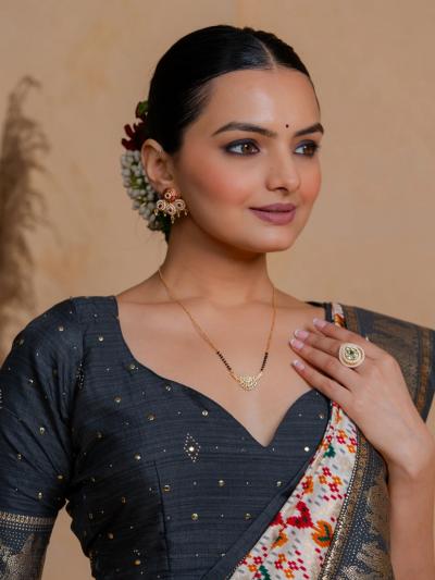 साडीवर जर चांदीचे जर असेल तर ऑस्किडाईज किंवा व्हाईट गोल्डचे मंगळसूत्र ट्राय करू शकता.