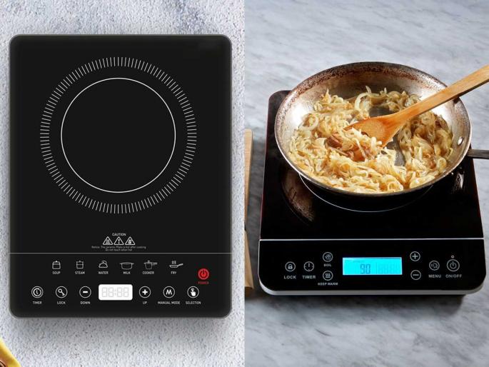 इंडक्शनवर टच बटणं, डिस्प्ले आणि कंट्रोल पॅनल असतात. चौकोनी डिझाइनमध्ये हे सर्व व्यवस्थित बसवणं सोपं होतं.