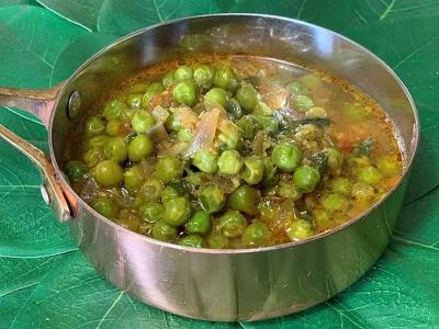 नारळ, कांदा, सुकं वाटण, मसाले इतर काही पदार्थ परतून मस्त मटार आमटी करता येते. भातासोबत खाायला अगदी परफेक्ट असा पदार्थ आहे. नक्की करुन पाहा. तसेच त्याला वरतून लाल तिखटाची फोडणी द्या. म्हणजे चव वाढेल.