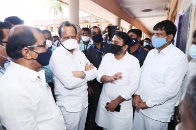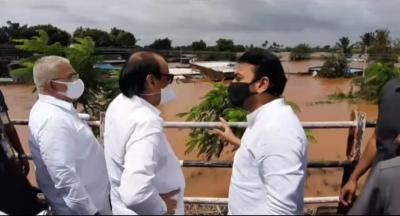अजित पवार यांच्यासमवेत पाहणीदरम्यान जलसंपदा मंत्री तथा सांगली जिल्ह्याचे पालकमंत्री जयंत पाटील, मदत पुनर्वसन मंत्री विजय वडेट्टीवार, कृषी राज्यमंत्री विश्वजीत कदम उपस्थित होते.