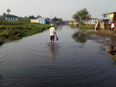 मुसळधार पावसाने सांगलीला झोडपले. गावठाणासहीत विस्तारीत भाग तसेच गुंठेवारीत दलदल निर्माण झाली होती. अनेकठिकाणी गटारी तुंबल्याने सांडपाणी रस्त्यावरून वहात होते. सांगलीच्या शंभर फुटी रस्त्यावरील उपनगरांमध्ये पावसाने दलदल निर्माण झाली आहे. अनेकठिकाणी पावसाचे तसेच सांडपाणी साचून राहिल्याने नागरिकांना ये-जा करताना कसरत करावी लागत आहे. (छाया - नंदकुमार वाघमारे)