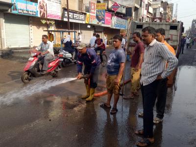 सांगलीच्या शामरावनगरचा संपूर्ण परिसर, हनुमाननगर, लक्ष्मी-नारायण कॉलनी, त्रिमुर्ती कॉलनी, सिव्हिल रोड, पत्रकार नगर आदी भागात दलदल निर्माण झाली होती. चिखलमय झालेले रस्ते अग्निशमन विभागाच्या वाहनांनी धुतले. (छाया - नंदकुमार वाघमारे)