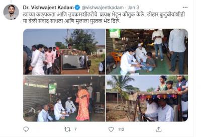 आधुनिक महाराष्ट्राचे शिल्पकार यशवंतराव चव्हाण यांची जन्मभूमी, माझ्या मतदारसंघातील देवराष्ट्रे या गावच्या दत्तात्रय लोहार यांनी उपक्रमशीलतेतून बनवलेल्या चार चाकी गाडीबद्दल मी कौतुक करतो. त्यासाठीचा ६० ते ७० हजाराचा खर्च मी माझ्या ट्रस्टच्या माध्यमातून देत असल्याचे जाहीर करतो, असे ट्विट विश्वजीत कदम यांनी केलं होतं.