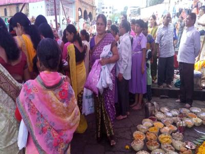 भाविकांनी नदीची पूजा करून दीपप्रज्वलन करुन आरतीही केली