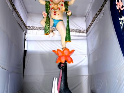 साताऱ्यातील मल्हारपेठेतील वीरशैव ककय्या समाजा मंडळाने हत्तीने सोडेंवर उंच उचललेल्या बाप्पांच्या मूर्तीची प्रतिष्ठापना केली आहे.(छाया : जावेद खान)