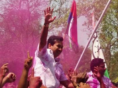 या विजयानंतर स्वाभिमान पक्षाच्या कार्यकर्त्यांनी कणकवली जोरदार जल्लोष केला.