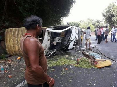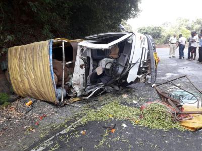 शिवशाही बस आणि भाजी वाहतूक करणारा टाटा एस टेम्पो यांच्यामध्ये अपघातानंतर टेम्पोमधील भाजी अशी इतस्ततः विखुरलेली होती.