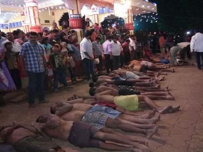 सातेरीच्या जत्रौत्सवात भाविक दिवसभर निर्जळी उपवास करून रात्री लोटांगण घालतात.
