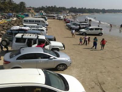 प्रचंड गर्दीमुळे वाहने पार्क करण्यास जागा नसल्याने पर्यटक थेट किनाऱ्यावरच वाहने पार्क करत आहेत.