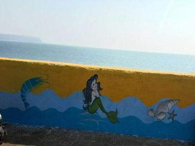 येथील समुद्रामध्ये मुबलक प्रमाणात सापडणाऱ्या शंखशिंपल्यांनाही या चित्रांमध्ये स्थान देण्यात आले आहे.