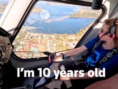ऑस्ट्रेलियात एक १० वर्षाची मुलगी विमान चालवत असल्याचा व्हिडीओ समोर आला आहे. या वयात मुल लहान खेळण्यासोबत खेळत असतात पण ही मुलगी विमानात पायलटचे काम करत आहे. ती ७ वर्षाची असताना विमान प्रवास करायला लागली.