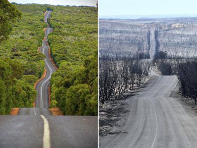 ऑस्ट्रेलियातील जंगलात आग लागून कितीतरी हेक्टर परिसर जळून राख झाला आहे. कोट्यवधी प्राणी-पक्षी, शेकडो घरे आणि काही लोकांना आपला जीव गमवावा लागला. ऑस्ट्रेलियातील ज्या निसर्गाची जगभरात चर्चा होती ती ठिकाणे आता बेचिराख झाली आहे. अनेक ठिकाणांचा चेहरामोहरा पूर्णपणे बदलून गेला आहे. असेच काही आग लागण्याआधीचे आणि आगीनंतरचे फोटो आम्ही तुम्हाला दाखवत आहोत. यावरून आगीचा भडका कसा होतो हे कळून येईल.