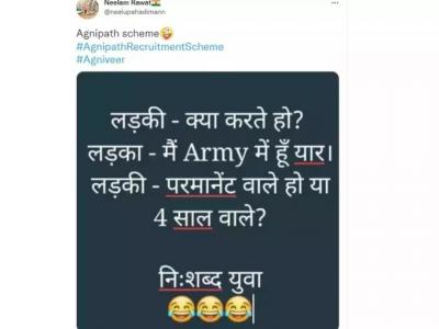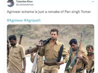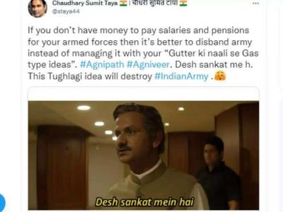 Agnipath memes viral : 'अग्निवीर', 'अग्निपथ', 'अग्निपथ रिक्रूटमेंट स्कीम' सारखे हॅशटॅक ट्विटरवर ट्रेन्ड करत आहेत. बरेच लोक मीम्सच्या माध्यमातून आपलं मत मांडत आहेत.