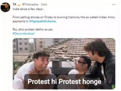 Agnipath memes viral : देशातील अनेक राज्यांमध्ये केंद्र सरकारच्या 'अग्निपथ योजने' विरोधात प्रदर्शन केलं जात आहे. हे प्रदर्शन दिवसेंदिवस वाढत आहे. अनेक ठिकाणी जाळपोळ झाली आहे. रस्ते, रेल्वे मार्ग बंद आहेत. सोशल मीडियावरही या घटनांचे कित्येक फोटो आणि व्हिडीओ व्हायरल झाले आहेत.