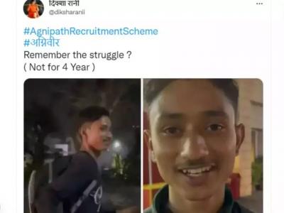 सोबतच 'अग्निवीर', 'अग्निपथ', 'अग्निपथ रिक्रूटमेंट स्कीम' सारखे हॅशटॅक ट्विटरवर ट्रेन्ड करत आहेत. बरेच लोक मीम्सच्या माध्यमातून आपलं मत मांडत आहेत. गेल्या आठवड्यात केंद्र सरकारकडून संरक्षण मंत्री राजनाथ सिंह यांनी सेनेत भरतीची नवीन स्कीन 'अग्निपथ'ची घोषणा केली होती. देशातील तरूणांची मागणी आहे की, सेनेत भरती आधीच्या पद्धतीनेच व्हावी.