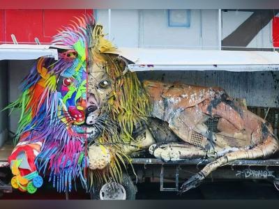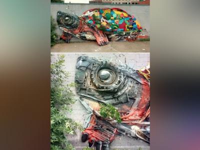 कामी न येणारं प्लॅस्टिक लोक रस्त्यावर फेकून देतात. त्याने पर्यावरणाचं किती नुकसान होतं हे ओरडून ओरडून सांगण्याची वेळ आता आली आहे. कारण प्लॅस्टिक नष्ट होत नाही. तसेच यामुळे जनावरांनाही आपला जीव गमवावा लागत आहे. हे प्लॅस्टिक नष्ट करण्याऐवजी याचा वापर करण्याची एक भन्नाट कल्पना पोर्तुगालचा आर्टिस्ट Artur Bordalo याने शोधून काढली आहे. त्याने 'Big Trash Animals' आर्ट वर्कच्या माध्यमातून प्लॅस्टिकपासून तयार केलेल्या जनावरांच्या प्रतिमा सादर केल्या आहेत. (Image Credit : scoopwhoop.com)