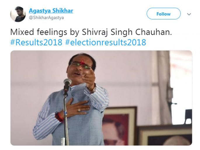 1 / 16मध्य प्रदेश, छत्तीसगढ, राजस्थान, तेलंगणा आणि मिझोराम या पाच राज्यांमध्ये झालेल्या विधानसभा निवडणूकांचे निकाल जवळपास स्पष्ट झाले आहेत. पाचपैकी ३ राज्यांमध्ये भाजपला माघारी सोडत कॉंग्रेस पुढे निघाली आहे. अशात सोशल मीडियात मेम्स आणि जोक्सचा जोरदार पाऊस सुरु झाला आहे. पंतप्रधान मोदी यांचं सरकार आल्यानंतर कॉंग्रेसने पहिल्यांदाच भाजपला इतकी जोरदार टक्कर दिल्याने अधिक प्रमाणात जोक्स व्हायरल होत आहेत. 2 / 16या पाच राज्यातील विधानसभा निडणूकांच्या निकालांना २०१९ मध्ये होणाऱ्या लोकसभा निवडणूकांआधीचं सेमी फायनल समजलं जात आहे. या निकालातून कॉंग्रेससाठी चांगले संकेत मिळत आहेत. 3 / 16या पाच राज्यातील विधानसभा निडणूकांच्या निकालांना २०१९ मध्ये होणाऱ्या लोकसभा निवडणूकांआधीचं सेमी फायनल समजलं जात आहे. या निकालातून कॉंग्रेससाठी चांगले संकेत मिळत आहेत. 4 / 16या पाच राज्यातील विधानसभा निडणूकांच्या निकालांना २०१९ मध्ये होणाऱ्या लोकसभा निवडणूकांआधीचं सेमी फायनल समजलं जात आहे. या निकालातून कॉंग्रेससाठी चांगले संकेत मिळत आहेत. 5 / 16या पाच राज्यातील विधानसभा निडणूकांच्या निकालांना २०१९ मध्ये होणाऱ्या लोकसभा निवडणूकांआधीचं सेमी फायनल समजलं जात आहे. या निकालातून कॉंग्रेससाठी चांगले संकेत मिळत आहेत. 6 / 16या पाच राज्यातील विधानसभा निडणूकांच्या निकालांना २०१९ मध्ये होणाऱ्या लोकसभा निवडणूकांआधीचं सेमी फायनल समजलं जात आहे. या निकालातून कॉंग्रेससाठी चांगले संकेत मिळत आहेत. 7 / 16या पाच राज्यातील विधानसभा निडणूकांच्या निकालांना २०१९ मध्ये होणाऱ्या लोकसभा निवडणूकांआधीचं सेमी फायनल समजलं जात आहे. या निकालातून कॉंग्रेससाठी चांगले संकेत मिळत आहेत. 8 / 16या पाच राज्यातील विधानसभा निडणूकांच्या निकालांना २०१९ मध्ये होणाऱ्या लोकसभा निवडणूकांआधीचं सेमी फायनल समजलं जात आहे. या निकालातून कॉंग्रेससाठी चांगले संकेत मिळत आहेत. 9 / 16या पाच राज्यातील विधानसभा निडणूकांच्या निकालांना २०१९ मध्ये होणाऱ्या लोकसभा निवडणूकांआधीचं सेमी फायनल समजलं जात आहे. या निकालातून कॉंग्रेससाठी चांगले संकेत मिळत आहेत. 10 / 16या पाच राज्यातील विधानसभा निडणूकांच्या निकालांना २०१९ मध्ये होणाऱ्या लोकसभा निवडणूकांआधीचं सेमी फायनल समजलं जात आहे. या निकालातून कॉंग्रेससाठी चांगले संकेत मिळत आहेत. 11 / 16या पाच राज्यातील विधानसभा निडणूकांच्या निकालांना २०१९ मध्ये होणाऱ्या लोकसभा निवडणूकांआधीचं सेमी फायनल समजलं जात आहे. या निकालातून कॉंग्रेससाठी चांगले संकेत मिळत आहेत. 12 / 16या पाच राज्यातील विधानसभा निडणूकांच्या निकालांना २०१९ मध्ये होणाऱ्या लोकसभा निवडणूकांआधीचं सेमी फायनल समजलं जात आहे. या निकालातून 