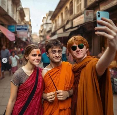 हॅरी पॉटर आणि त्याचे इतर मित्र सेल्फी घेताना दिसतात. फोटोवर लोकांनी विविध कमेंट्स केल्या आहेत.