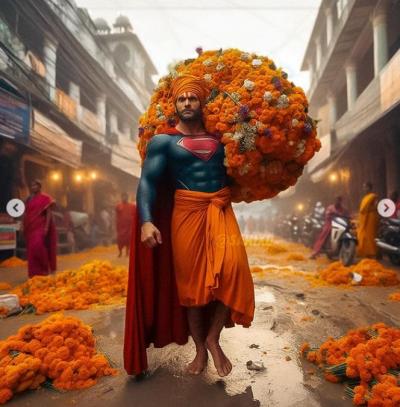 सुपरमॅनचा कमाल लूक पाहायला मिळत आहे. त्याने कपाळावर टिळा लावला आहे, फेटा बांधला आहे. खांद्यावर फुलांच्या माळा घेऊन जात असल्याचं दिसतं.