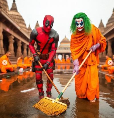 डेडपूल आणि जोकरने देखील मंदिर परिसर स्वच्छ करण्याची जबाबदारी घेतलेली पाहायला मिळत आहे.
