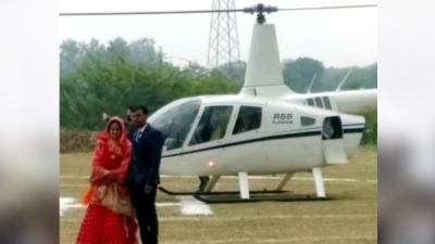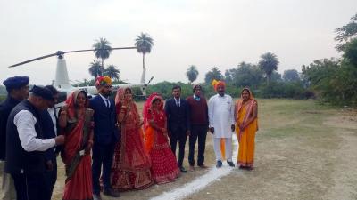 हे दोन्ही नवविवाहित जोडपे लग्नानंतर लग्नानंतर हेलिकॉप्टरने गाव देवली अरब येथे आले. या ठिकाणी हेलीपॅड तयार करण्यात आला होता. ज्या मॅरेज गार्डनमध्ये लग्न झाले त्या ठिकाणीसुद्धा हेलिपॅड तयार करण्यात आला होता.