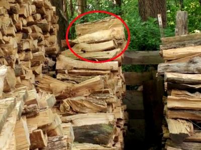 या लाकडांच्या ढीगावर एक मांजर आरामात झोपलेली आहे. शोधा दिसतेय का....