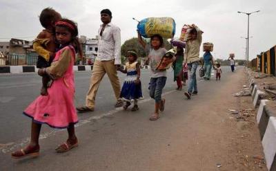 या मजुरांच्या कुटुंबाला जेवण आणि पाणी मिळणंही कठीण झालं. लॉकडाऊनमुळे सर्व हॉटेल्स बंद होते. त्यामुळे न खाता-पिता यांची घराच्या दिशेने पायपीट सुरु आहे.