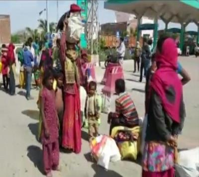 लॉकडाऊनमुळे या मजुरांच्या मालकांनी कामबंद केलं आहे. बुधवारी सांबरकाठा येथे हायवेवर मजूर आपल्या कुटुंबासह सामान घेऊन चालत जाताना दिसले.