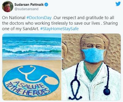 वाळूच्या शिल्पातून डॉक्टरांना सलाम करण्यात आला आहे.
