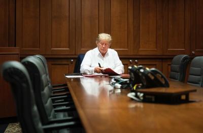 ट्रम्प यांची मुलगी इवांका हिने आपल्या ट्विटर अकाऊंटवरून हा फोटो शेअर करत सांगितले की, अमेरिकेच्या लोकांसाठी काम करण्यापासून ट्रम्प यांना कोणीही रोखू शकत नाही. कोरोनाने संक्रमित असलेल्या डोनाल्ड ट्रम्प यांच्याशी निगडीत असलेला हाच मुद्दा ट्रम्प समर्थकांनी वर उचलला असून राष्ट्राध्यक्षपदासाठी योग्य असल्याचे दाखवून देण्याचा प्रयत्न केला आहे.