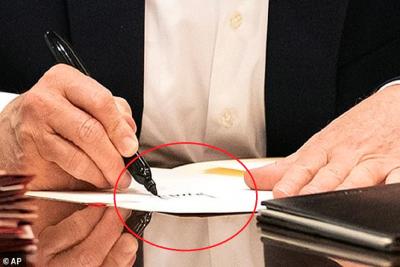 व्हाइट हाऊचे पत्रकार एंडू फेनबर्ग यांनी या फोटोचो विश्लेषण करताना सांगितले की, ट्रम्प को पांढऱ्या कागदावर आपलं नाव लिहित आहे. त्यानंतर ट्विटर अनेकांनी त्यांची खिल्ली उडवली.