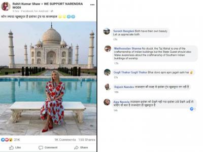 सोशल मीडियावर एका युजर्सने इवांकाचा फोटो फेसबुकवर पोस्ट केला. त्या फोटोत त्याने लिहिलं की कोण सर्वात जास्त सुंदर आहे इवांका की ताजमहाल? या फोटोला ९ तासातंच २१ हजार जणांनी लाईक्स केलं तर १५५ लोकांनी शेअर केले.
