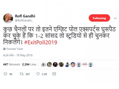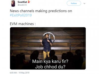 १७व्या लोकसभा निवडणुकीची धामधूम संपल्यावर रविवारी सांयकाळी निवडणुकीच्या एक्झिट पोलने एकच धुमाकूळ झालाय. वेगवेगळ्या न्यूज चॅनल्स आणि एजन्सीजच्या एक्झिट पोलमधून केंद्रात पुन्हा एकदा भाजपा सरकार येण्याचा अंदाज वर्तवण्यात आलाय. यावरून सोशल मीडियात यूजर्सनी मजेदार मिम्सही शेअर केलेत. बघा एक्झिट पोलवरील मजेदार मिम्स...
