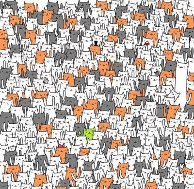 या खूपसाऱ्या मांजरींमध्ये एक ससाही आहे. दिसला का?