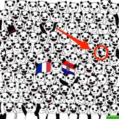 या फोटोत खूपसारे पांडा आहेत आणि त्यांच्या मधे एक Soccer Ball पडला आहे. तो शोधायचा आहे.