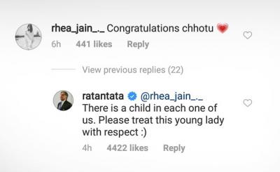 त्यांनी रिप्लाय केला की, 'आपल्या सर्वांमध्ये एका लहान मुलाचे गुण असतात. कृपया या मुलीचा आदर करा'. नंतर या मुलीने तिची कमेंट डिलिट केली.