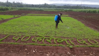 या तरुण शेतकऱ्याने भात पिकाची लावण करताना ‘गो कोरोना गो’ अशी अक्षरं रेखाटली आहेत. त्याची ही अनोखी शक्कल आता सर्व विभागात चर्चेचा विषय ठरली आहे.