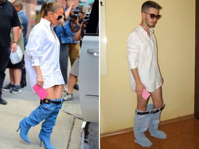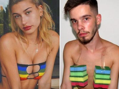 हॉलिवूड सेलिब्रिटींचे ड्रेस किंवा त्यांच्या स्टाईल नेहमी चर्चेचा विषय असतात. काहींवर वाद होतात तर काहींचं कौतुक केलं जातं. त्यांचे फॉलोअर्स त्यांना फॉलोही करतात. पण सध्या एक रोमानियन आर्टिस्ट bodi_imita चांगलाच चर्चेत आहे. कारण त्याने अनेक सेलिब्रिटींना कॉपी केलंय. पण त्याने जे केलं ते ओरिजिनलपेक्षा फारच गंमतीदार आहे. बघा त्याचे फोटो...(Image Credit : Boredpanda.com)