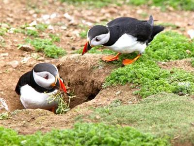 Puffins पक्षी नेहमीसाठी एकत्र येतात. ते त्यांची घरे डोंगरांमध्ये तयार करतात आणि टॉयलेटसाठी एक भाग सोडतात.
