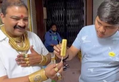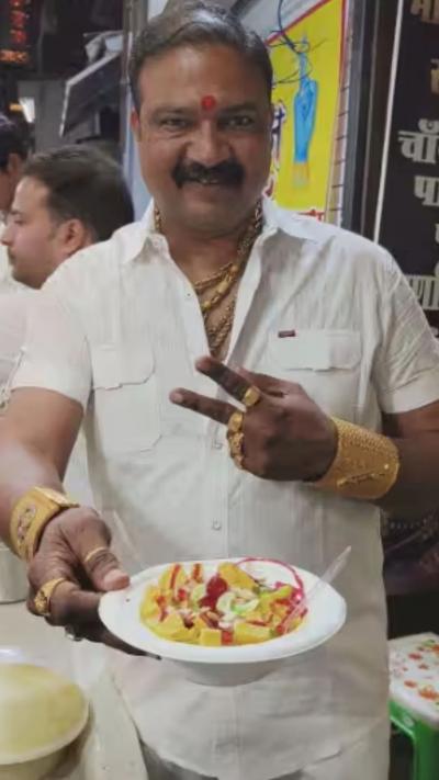 हा गोल्डमॅन दुसरा तिसरा कुणी नसून चक्क सराफा बाजारात कुल्मी विकणारा आहे. त्याचे नाव बंटी यादव असं आहे. त्याला लहानपणापासून सोन्याची आवड आहे. त्यामुळे अंगात किलोभर सोनं घालून हा पठ्ठ्या त्याचे कुल्फीचं दुकान चालवतो.