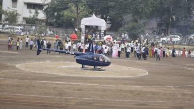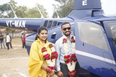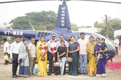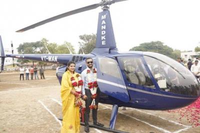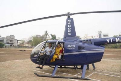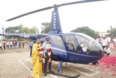सागर पार्कवर दुपारी हे हेलीकॉप्टर उतरल्यानंतर नागरिकांनीही हेलीकॉप्टरसह नवदाम्पत्याला पाहायला गर्दी केली होती. कावडीया कुटुंबातील शिवानी अशोक कावडीया हिचा विवाह परळी वैजनाथ येथील प्रथितयश जैन परिवारातील डॉ. कुणाल यांच्यासोबत झाला. शिवानी लग्नानंतर प्रथमच माहेरी येणार होती.
