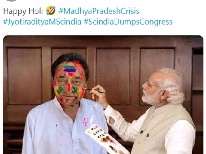 1 / 26मध्य प्रदेशमधील काँग्रेसचे नेते आणि माजी खासदार ज्योतिरादित्य शिंदे यांनी आज भाजपामध्ये प्रवेश केला आहे. यावेळी भाजपाचे अध्यक्ष जे. पी. नड्डा उपस्थित होते. दुपारी 12.30 वाजता होणारा हा प्रवेश दुपारी 2.55 ला घेण्यात आला. 2 / 26या घटनेला सोशल मीडियाने चांगलंच डोक्यावर घेतलं आहे. ट्विटर आणि फेसबुकवर मीम्सचा पाऊस पडताना दिसत आहे. 3 / 26या मीम्सच्या माध्यामातून नेटकऱ्यांनी ज्योतिरादित्य शिंदे यांची खिल्ली उडवली आहे.4 / 26बुलाते मगर जानेका नही.. अशा शब्दात खिल्ली उडवली आहे.5 / 26दिल्लीतील भाजपाच्या मुख्यालयात हा पक्षप्रवेश पार पडला. होळीच्या दिवशीच मध्य प्रदेशमध्ये कोमेजलेल्या भाजपामध्ये उत्साहाचे भरते आले होते. कारण काँग्रेसचे मोठे नेते ज्योतिरादित्य शिंदे यांनी काँग्रेसचा राजीनामा दिला. याचबरोबर 22 आमदारांनीही विधानसभाध्यक्षांकडे राजीनामा पाठवून दिल्याने काँग्रेस अल्पमतात आली आहे.6 / 26दिल्लीतील भाजपाच्या मुख्यालयात हा पक्षप्रवेश पार पडला. होळीच्या दिवशीच मध्य प्रदेशमध्ये कोमेजलेल्या भाजपामध्ये उत्साहाचे भरते आले होते. कारण काँग्रेसचे मोठे नेते ज्योतिरादित्य शिंदे यांनी काँग्रेसचा राजीनामा दिला. याचबरोबर 22 आमदारांनीही विधानसभाध्यक्षांकडे राजीनामा पाठवून दिल्याने काँग्रेस अल्पमतात आली आहे.7 / 26दिल्लीतील भाजपाच्या मुख्यालयात हा पक्षप्रवेश पार पडला. होळीच्या दिवशीच मध्य प्रदेशमध्ये कोमेजलेल्या भाजपामध्ये उत्साहाचे भरते आले होते. कारण काँग्रेसचे मोठे नेते ज्योतिरादित्य शिंदे यांनी काँग्रेसचा राजीनामा दिला. याचबरोबर 22 आमदारांनीही विधानसभाध्यक्षांकडे राजीनामा पाठवून दिल्याने काँग्रेस अल्पमतात आली आहे.8 / 26दिल्लीतील भाजपाच्या मुख्यालयात हा पक्षप्रवेश पार पडला. होळीच्या दिवशीच मध्य प्रदेशमध्ये कोमेजलेल्या भाजपामध्ये उत्साहाचे भरते आले होते. कारण काँग्रेसचे मोठे नेते ज्योतिरादित्य शिंदे यांनी काँग्रेसचा राजीनामा दिला. याचबरोबर 22 आमदारांनीही विधानसभाध्यक्षांकडे राजीनामा पाठवून दिल्याने काँग्रेस अल्पमतात आली आहे.9 / 26दिल्लीतील भाजपाच्या मुख्यालयात हा पक्षप्रवेश पार पडला. होळीच्या दिवशीच मध्य प्रदेशमध्ये कोमेजलेल्या भाजपामध्ये उत्साहाचे भरते आले होते. कारण काँग्रेसचे मोठे नेते ज्योतिरादित्य शिंदे यांनी काँग्रेसचा राजीनामा दिला. याचबरोबर 22 आमदारांनीही विधानसभाध्यक्षांकडे राजीनामा पाठवून दिल्याने काँग्रेस अल्पमतात आली आहे.10 / 26दिल्लीतील भाजपाच्या मुख्यालयात हा पक्षप्रवेश पार पडला. होळीच्या दिवशीच मध्य प्रदेशमध्ये कोमेजलेल्या भाजपामध्ये उत्साहाचे भरते आले होते. कारण काँग्रेसचे मोठे नेते ज्योतिरादित्य शिंदे यांनी काँग्रेसचा र