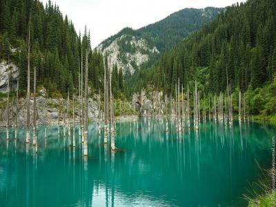 या तलावाच्या आत वाढणारी ही झाडे एखाद्या आश्चर्यापेक्षा कमी नाही. या झाडांची संख्याही इतकी आहे की, त्यांनी जंगलाचं रूप घेतलं आहे. १९११ मध्ये इथे एक भूकंप आला होता. तेव्हा एका लॅंडस्टाइडमुळे डोंगराचं तोंड बंद झालं होतं आणि तिथे एक नैसर्गिक डॅम तयार झाला होता. (Image Credit : aboutkazakhstan)